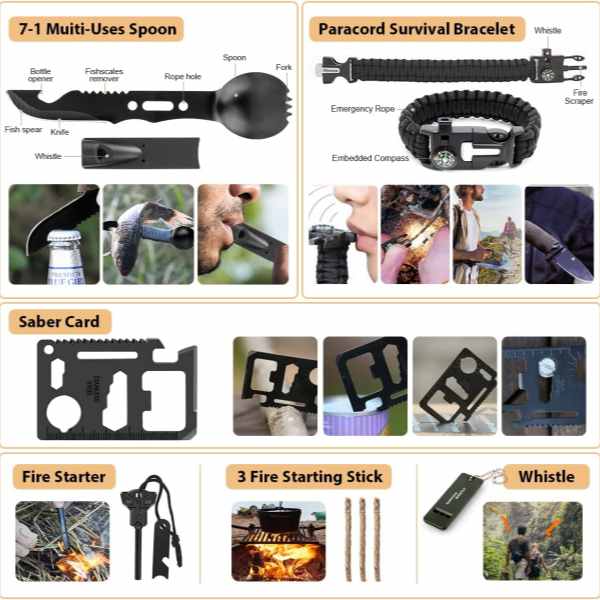 Bộ dụng cụ sinh tồn ngoài trời tối ưu được thiết kế dành cho người đi bộ đường dài, người cắm trại, đội cứu hộ và bất kỳ ai chuẩn bị cho những trường hợp khẩn cấp ngoài trời bất ngờ. Sử dụng vật liệu bền, chịu được thời tiết và các bộ phận chuyên nghiệp, sản phẩm này